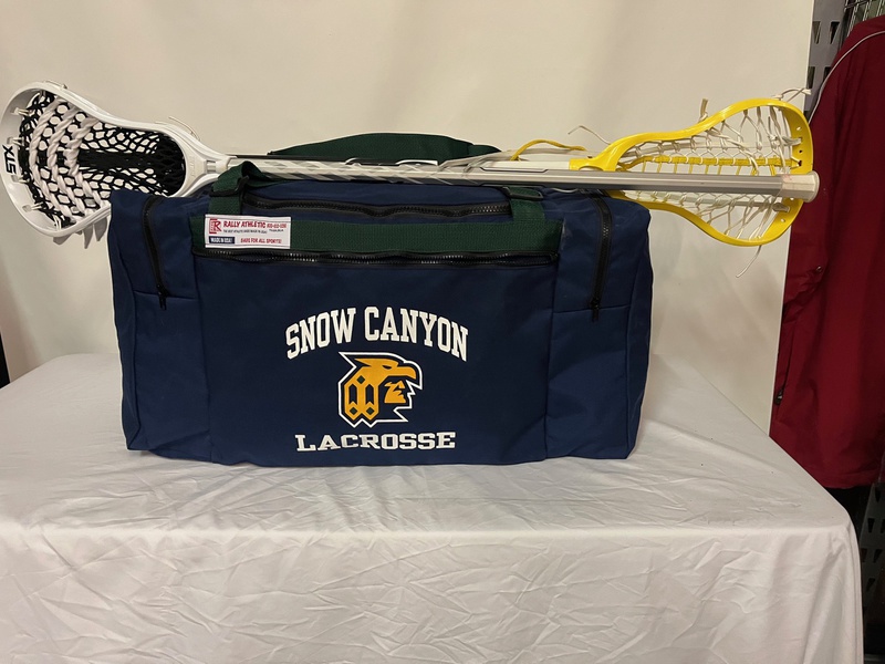 This is just our basic football varsity bag with an added sleeve to hold your lacrosse stick